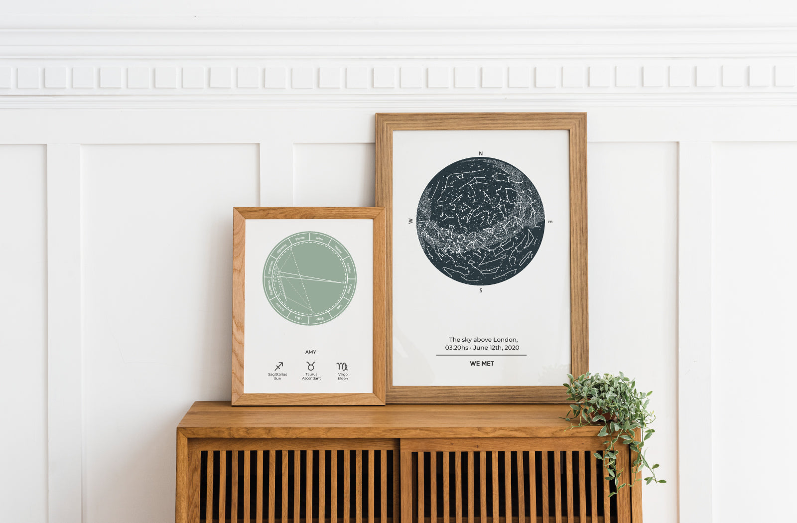 Custom sky maps capturing the exact alignment of the stars on your special date—turning a moment into a lasting memory ✨